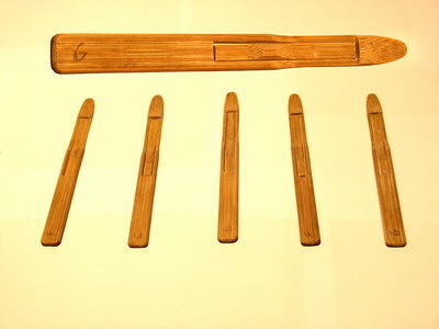 mulanya terbuat dari pelepah aren dengan panjang 10-20 cm. Namun dalam